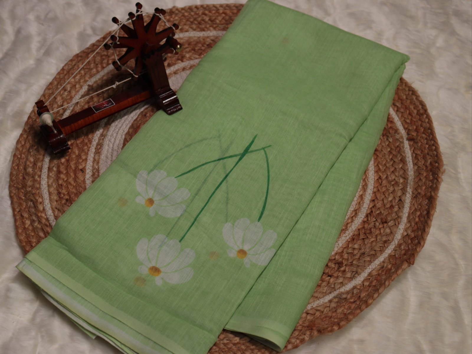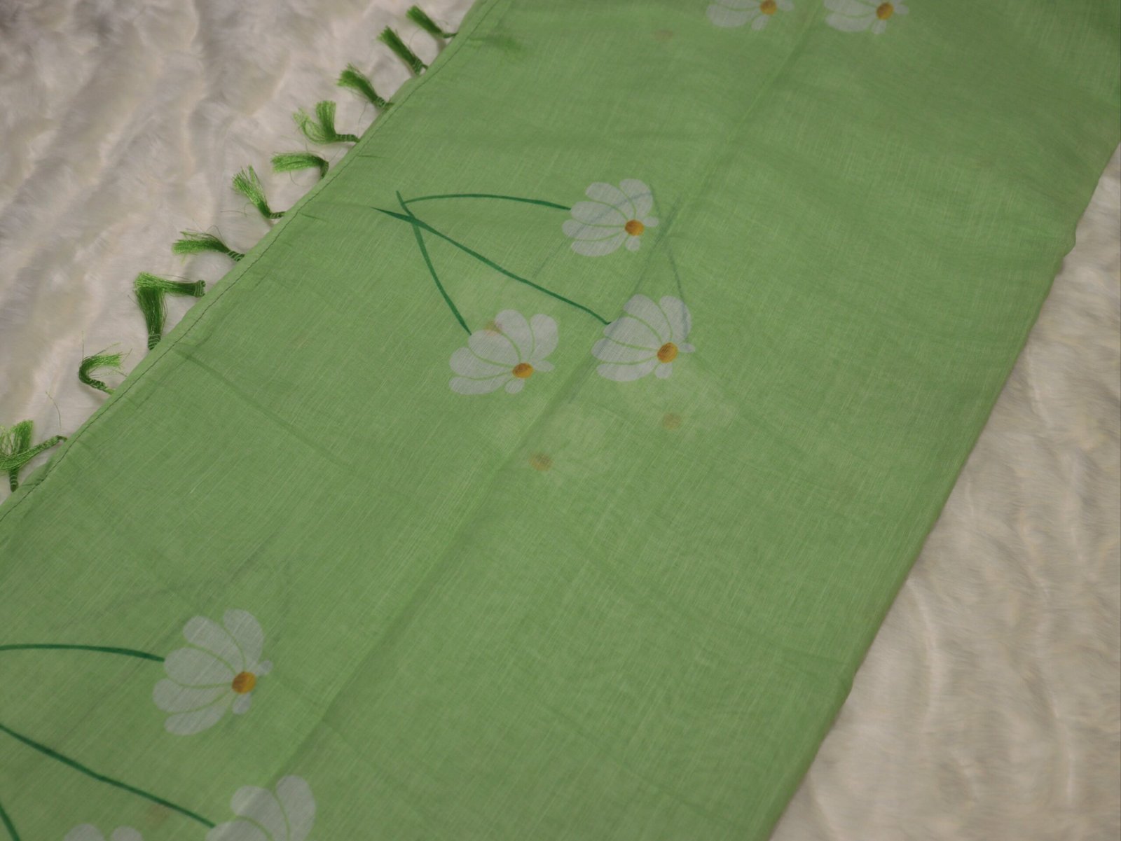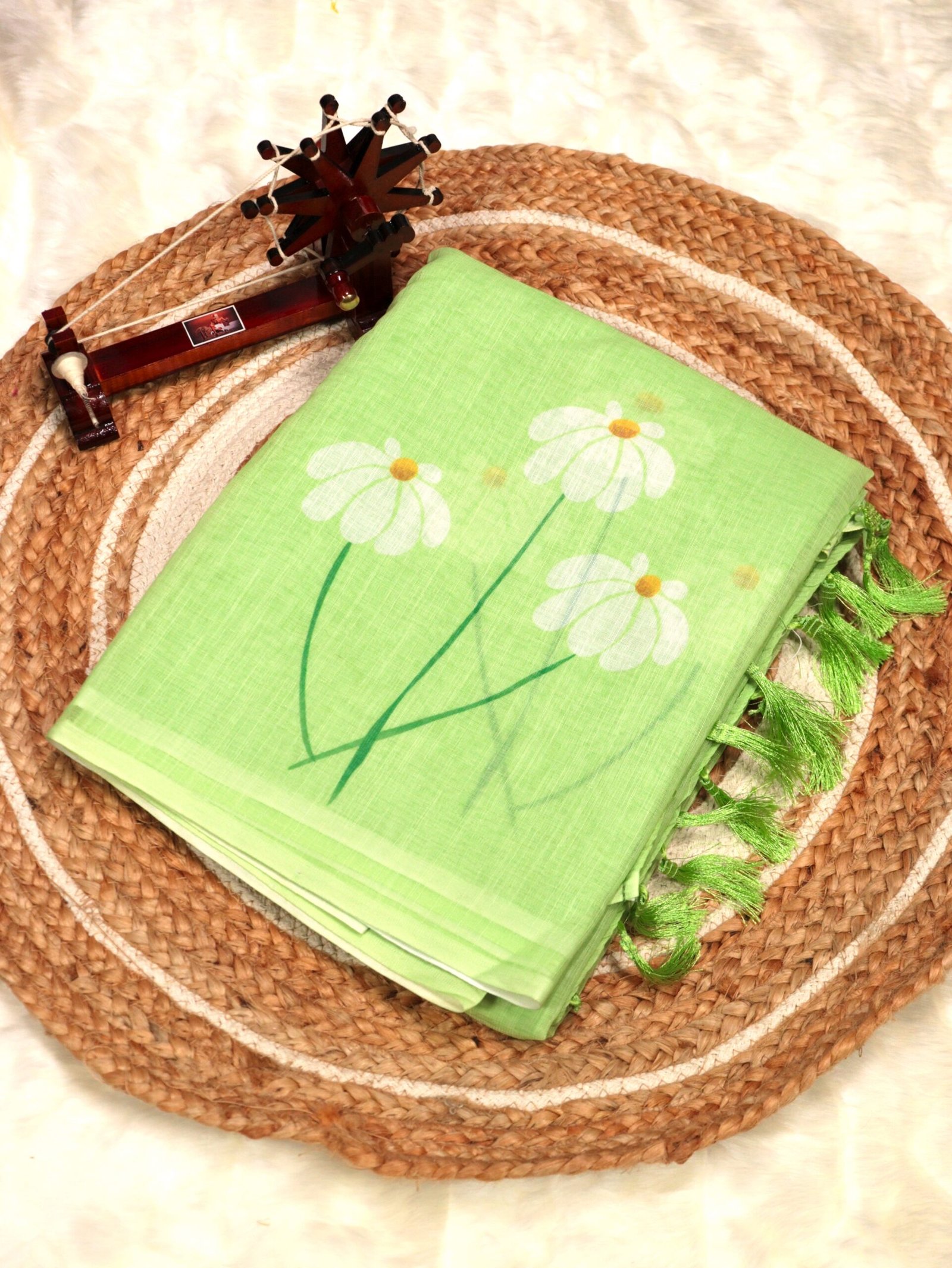 Crafted from a breathable, lightweight linen cotton blend, this saree carries a refined digital floral design that gives it a classy, minimal yet traditional charm. The tassel-finished pallu adds a graceful touch while keeping the drape light and easy to manage throughout the day.