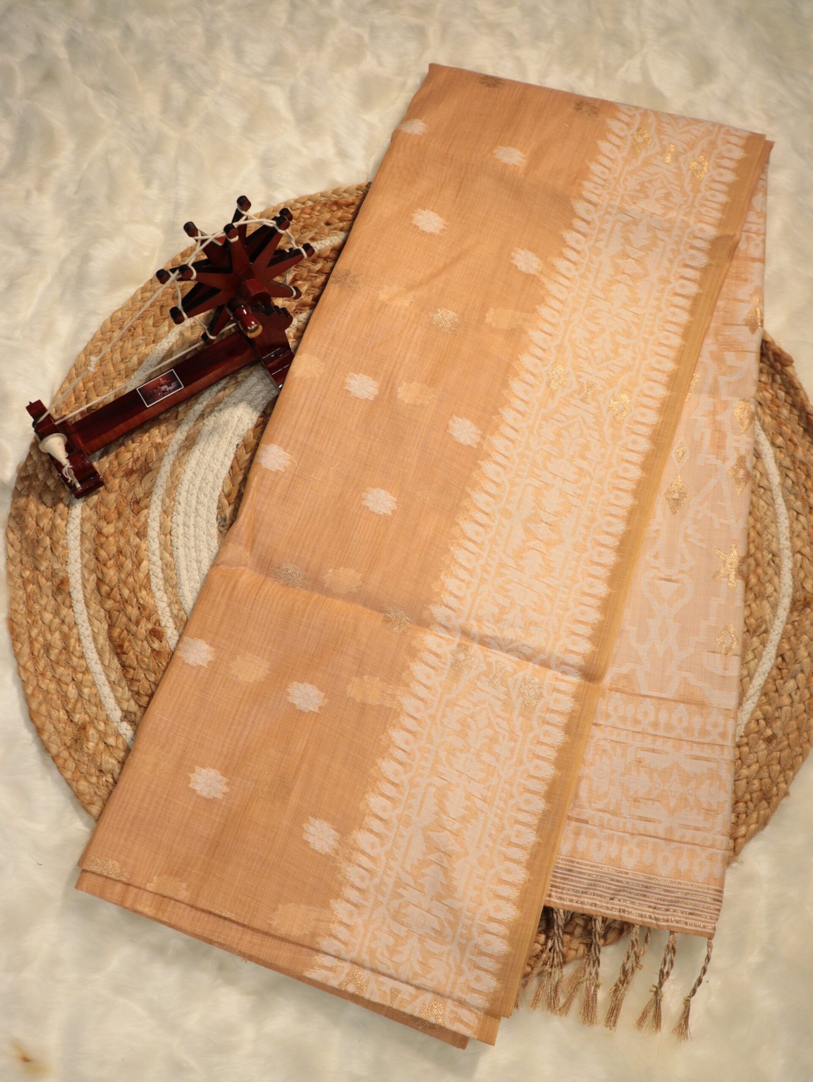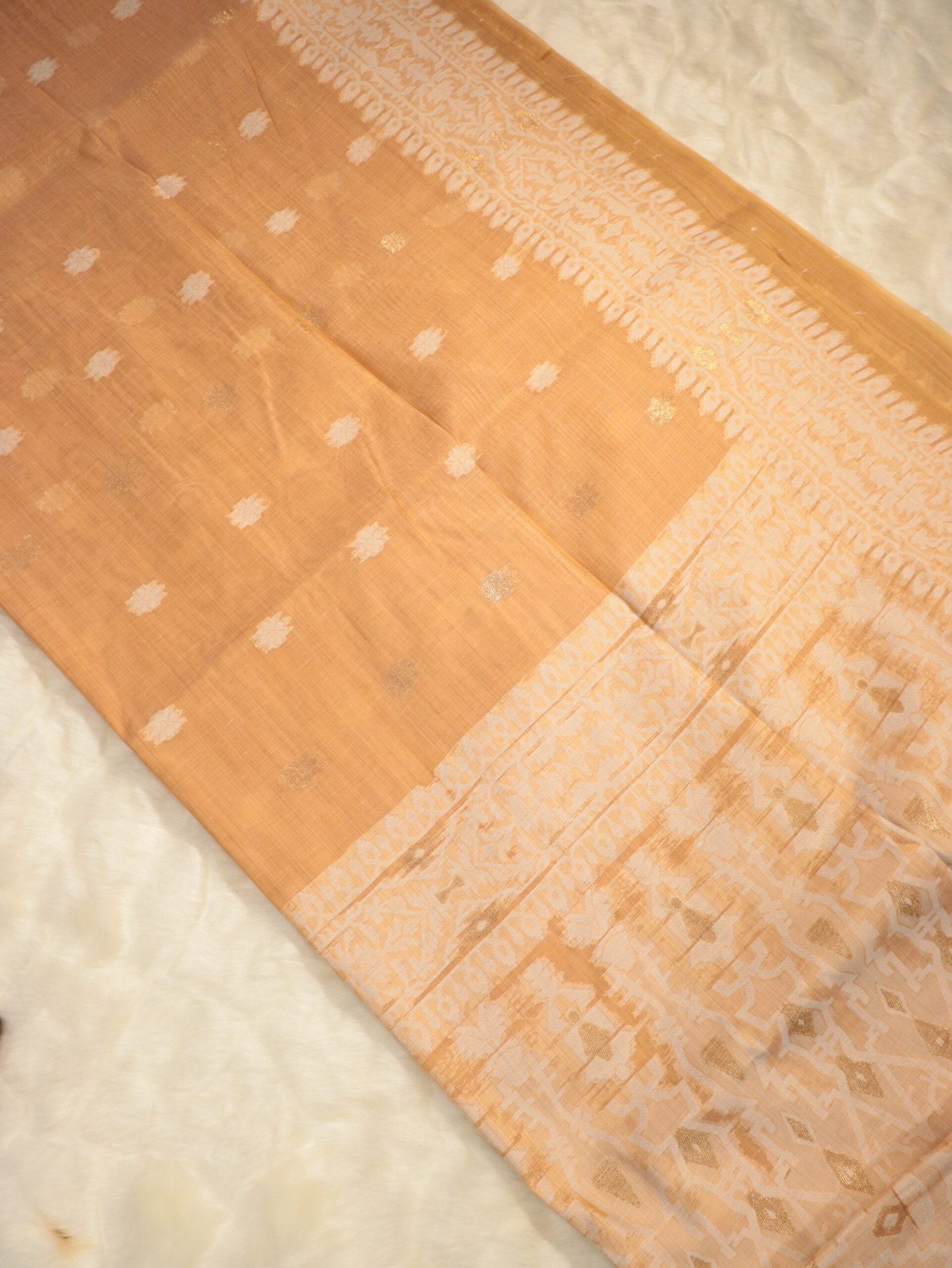 Bring home timeless elegance with this beautifully woven saree, designed for comfort and everyday sophistication. Crafted from a soft, breathable fabric, this saree features delicate woven buttas spread across the body and a finely detailed border that adds a touch of tradition.