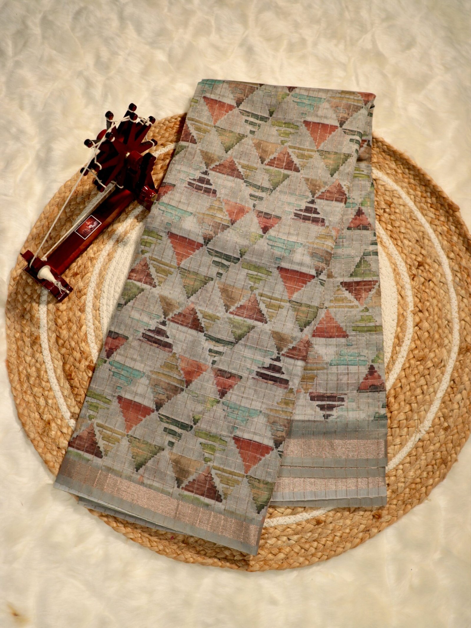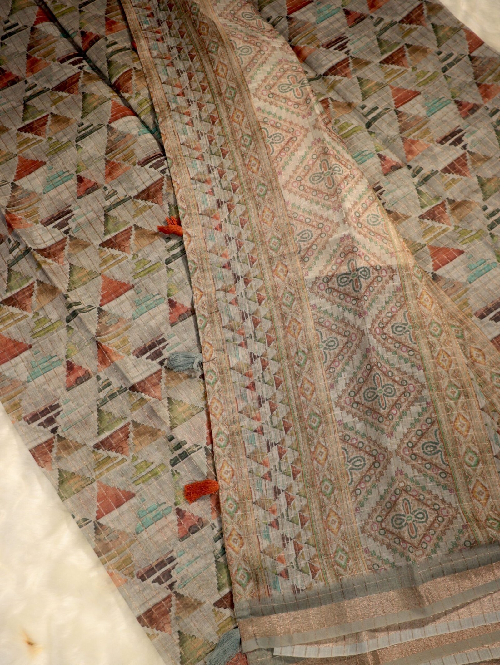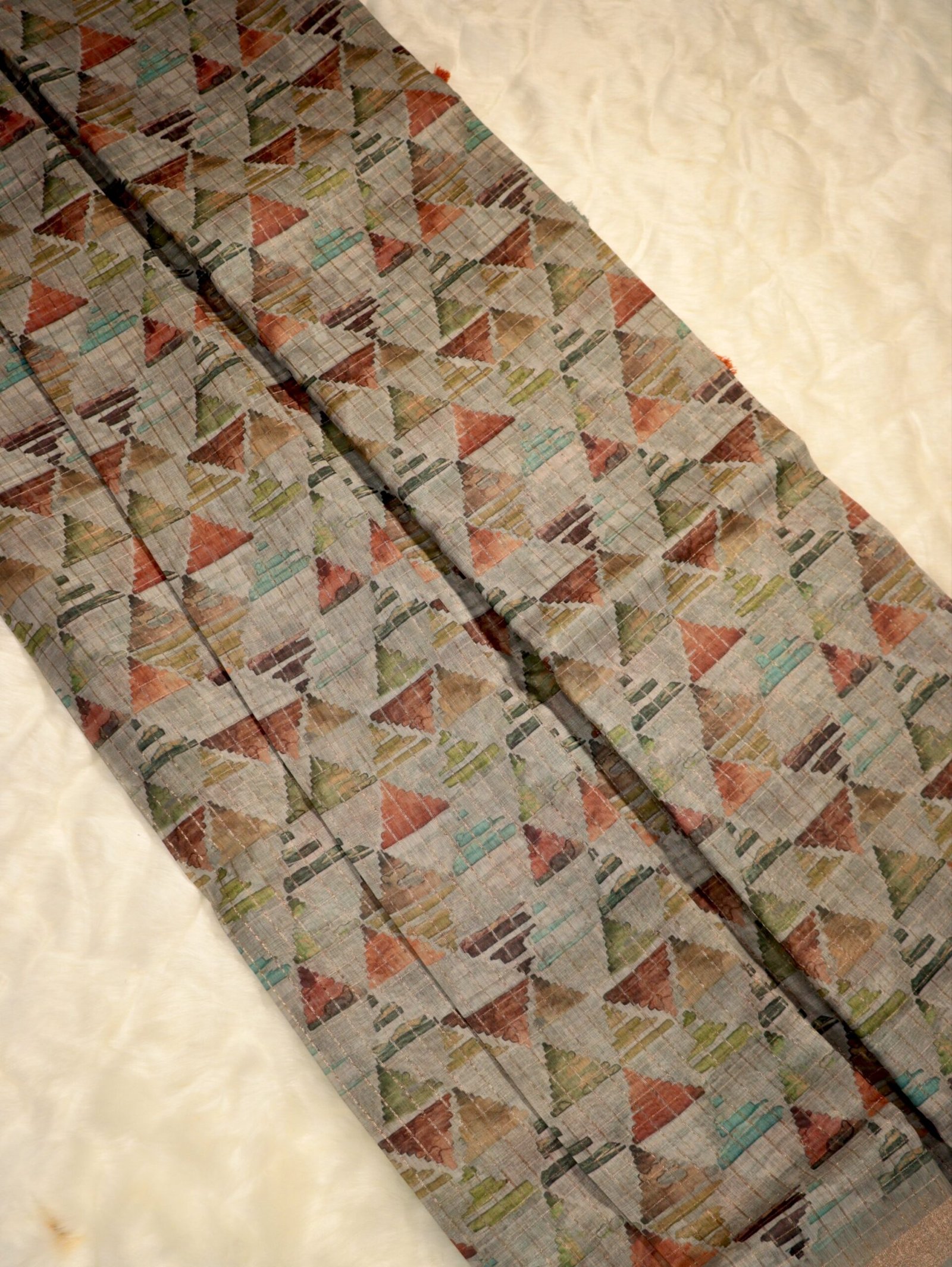 Silver Grey Subtle Geometric Printed Saree Featuring Intricate Motifs and Fine Texture with a Refined Finish for Versatile Wear